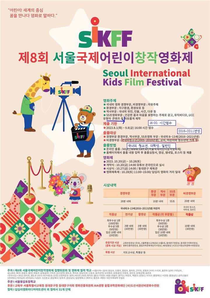 (서울=연합뉴스) 정주원 기자 = 제8회 서울국제어린이창작영화제가 오는 10월 20일(금) 개막해 10월 28일(토)까지 서울 동대문구 답십리영화미디어아트센터 일대에서 개최된다.