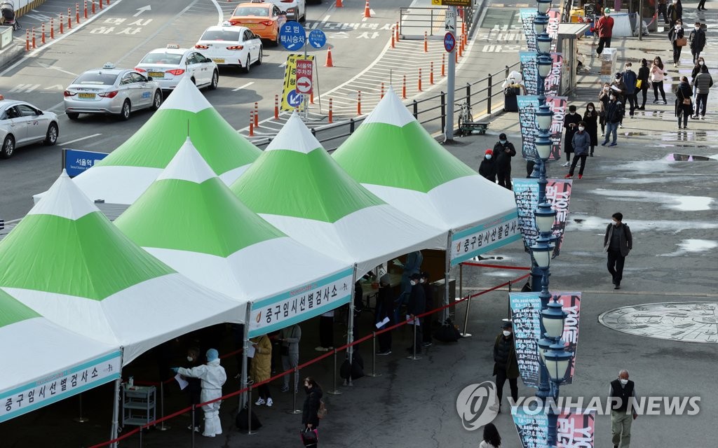 | ▲ Citizens line up at a temporary screening center in downtown Seoul to undergo virus tests on March 17, 2021. (Yonhap) |