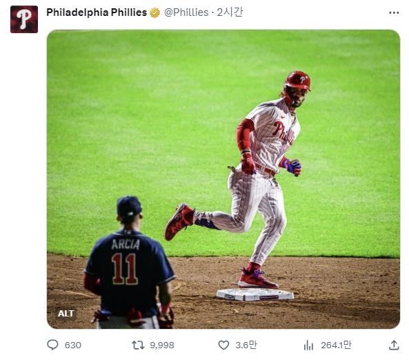 필라델피아 구단은 소셜미디어에 하퍼의 홈런과 아르시아를 노려보는 장면을 소개하며 "atta-boy 하퍼"라는 재치 있는 글을 남겼다.