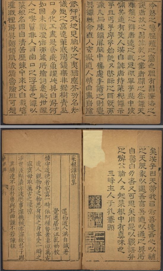 안 교수는 "초간본은 중국 베이징과 상하이에 있는 도서관이 소장한 목판본을 제외하면 전하는 책이 거의 없다"며 본문에는 세부 제목 없이 전집 222칙(則·고전에서 글을 세는 단위)과 후집 141칙이 있다고 설명했다.