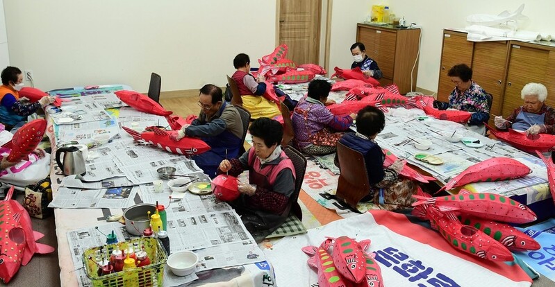 | ▲ 산천어 등 제작 한창인 어르신 [화천군 제공.재판매 및 DB 금지] |