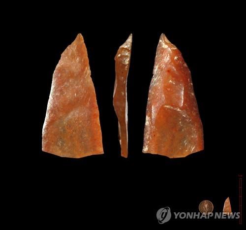| ▲ 망드랭 동굴서 발굴된 현생인류의 '첨단' 찌르개 [Ludovic Slimak 제공/ AP 연합뉴스] |