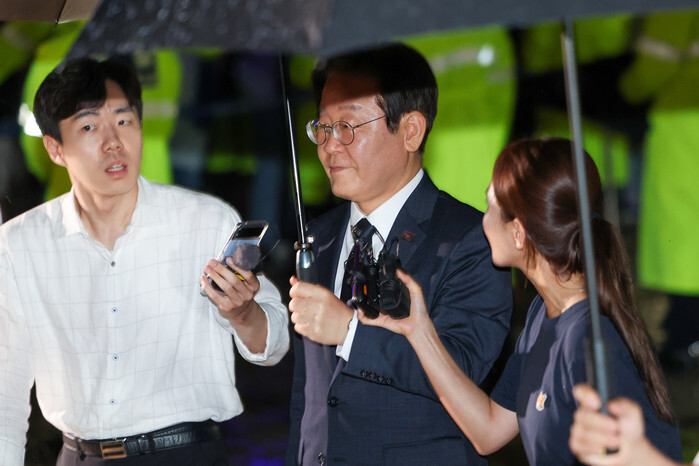 Lee Jae-myung, head of the main opposition Democratic Party, leaves the Seoul Central District Court in southern Seoul on Sept. 20, 2024, after a closing hearing on his alleged election law violations. (Yonhap)