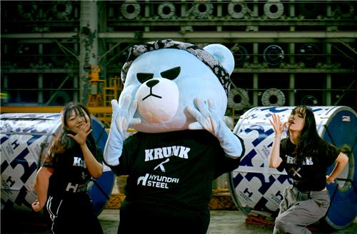 ▲ 현대제철[004020]은 YG엔터테인먼트의 대표 캐릭터 '크렁크'와 협업한 댄스 영상 '현대제철X크렁크 인(in) 현대제철 순천'을 유튜브를 통해 공개했다고 28일 밝혔다. 현대제철은 크렁크 캐릭터를 통해 친밀감을 형성하고, 일반 대중이 접하기 힘든 철강산업의 현장을 커버 댄스(아이돌의 무대 안무를 따라 하는 댄스)로 흥미롭게 소개했다고 설명했다. 공개 영상에서는 크렁크가 현대제철 순천공장 곳곳을 누비면서 YG엔터테인먼트 신인 걸그룹 '베이비몬스터'의 신곡 'SHEESH'에 맞춰 익살스럽고 역동적인 커버 댄스를 선보인다. (서울=연합뉴스)