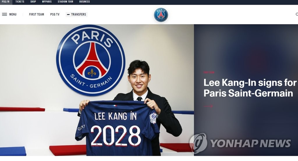 ▲ PSG 홈페이지 메인화면 장식한 이강인 [파리 생제르맹 구단 홈페이지 캡처. 재판매 및 DB 금지] photo@yna.co.kr
