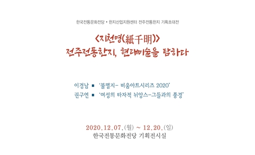 (전주=연합뉴스) 임채두 기자 = 한국전통문화전당이 7일부터 20일까지 '전주 전통한지, 현대미술을 탐하다' 기획전을 연다.