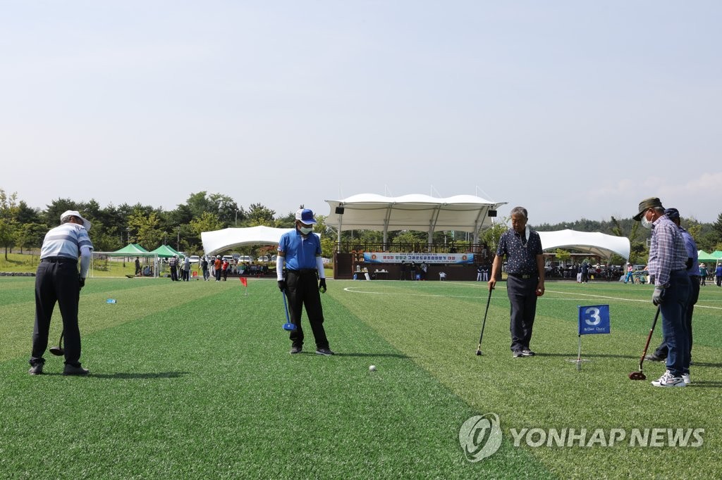 (무주=연합뉴스) 최영수 기자 = 제15회 대한체육회장배 전국그라운드골프대회가 17일 전북 무주군 안성체육공원에서 개막해 이틀간 열린다.