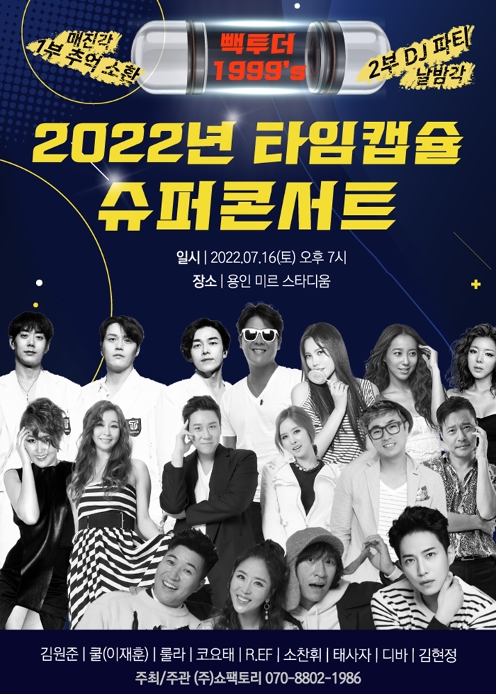 11일 공연 주최사 쇼팩토리에 따르면 '2022년 타임캡슐 슈퍼콘서트'가 오는 7월 16일 오후 경기 용인시 미르 스타디움에서 열린다.