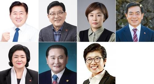 ▲ 제주도지사 선거에 출사표 던진 후보들 (제주=연합뉴스) 시계방향 순서로 민주당 오영훈 전 의원, 국민의힘 허향진 전 제주대 총장, 부순정 제주녹색당 공동운영위원장, 박찬식 제주가치 공동대표, 장정애 제주해녀문화보전회 이사장, 오영국 송호대학교 산학협력 연구교수, 부임춘 전 제주신문 대표. [각 선거캠프 제공·재판매 및 DB 금지]