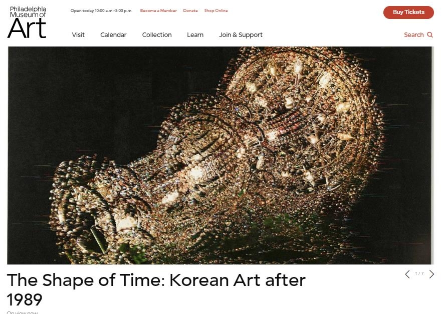 | ▲ 필라델피아 미술관 웹사이트의 '시간의 형태: 1989년 이후 한국미술'전 소개 페이지[필라델피아 미술관 웹사이트 캡처] |