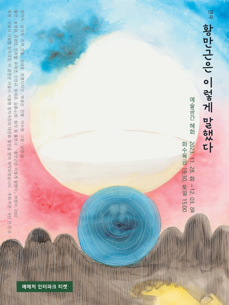 극단 만.천.유는 오는 28일부터 다음 달 3일까지 예술공간 혜화에서 연극 '황만근은 이렇게 말했다'를 공연한다. 2002년 발간되어 동인문학상, 이효석문학상 등을 수상한 성석제 작가의 동명 소설이 원작이다.
