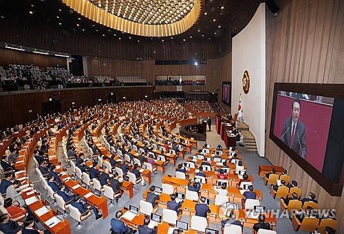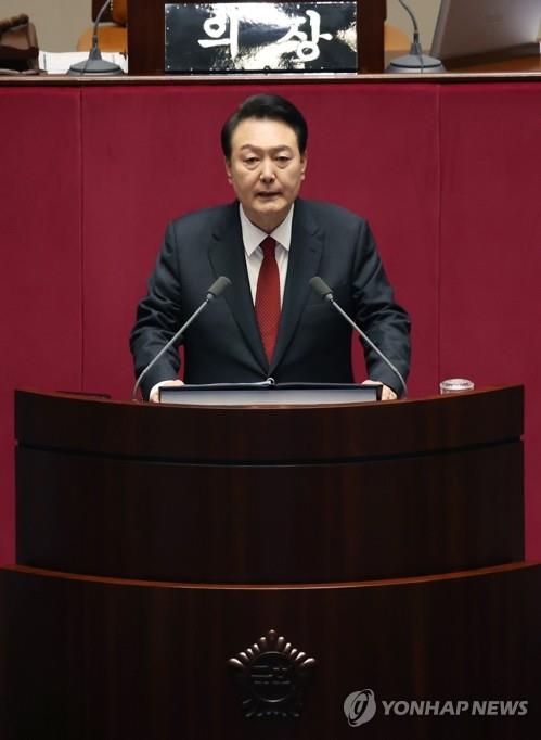 Despite such difficulties, Yoon also vowed to stick to a sound fiscal policy next year in order not to pass debts on to future generations, as he called for bipartisan support for passing the government's 657 trillion-won (US$487 billion) budget proposal.