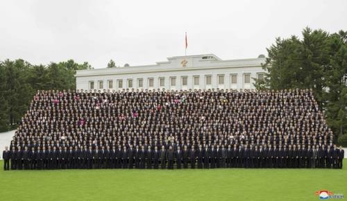 SEOUL, July 9 (Yonhap) -- North Korean leader Kim Jong-un held a large-scale group photo session with officials from the ruling party's life guidance sections that attended a workshop earlier this week, state media reported Saturday.