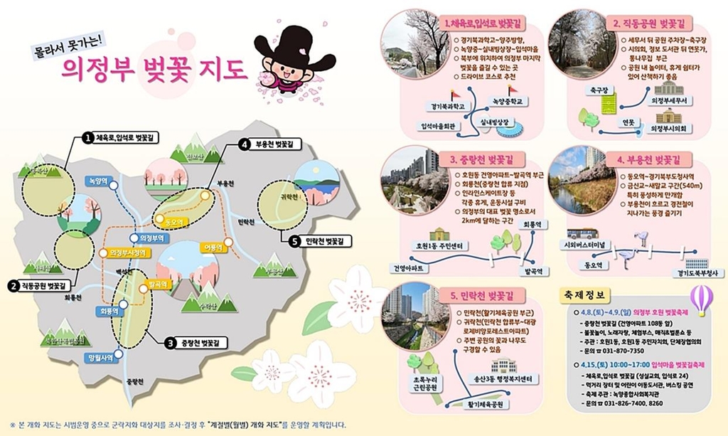 의정부시 '벚꽃 지도' 제작…5개 구간 9.8㎞ 소개