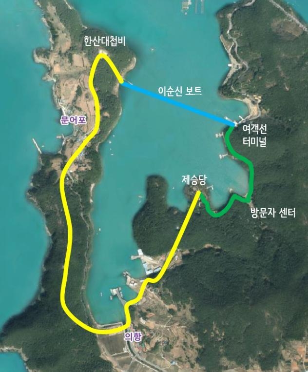 제승당과 한산대첩비를 이순신 스토리텔링 도보길로 연결하고 대첩비에서 제승당 여객터미널까지 이순신 보트를 운영해 일주코스를 완성할 계획이다.