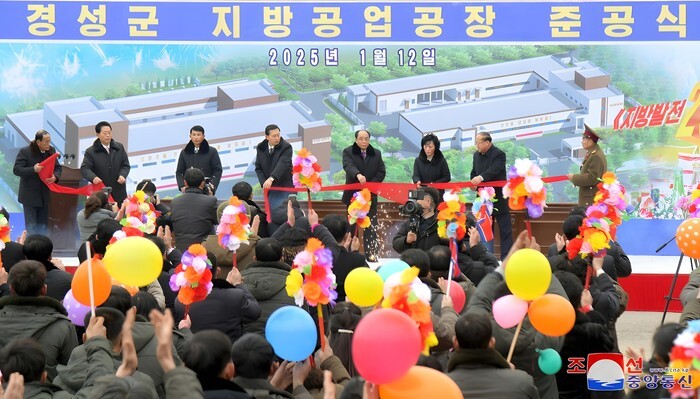 North Korean party officials, soldiers, employees and others take part in the inauguration ceremony of a regional factory in Kyongsong County, North Hamgyong Province, on Jan. 12, 2025, in this photo released by the North's official Korean Central News Agency the next day. The dedication of the factory is part of a project that the North's leader Kim Jong-un set forth in January 2024 to build modernized factories in 20 cities and counties over the next decade to enhance the living standards of the people. (For Use Only in the Republic of Korea. No Redistribution) (Yonhap)