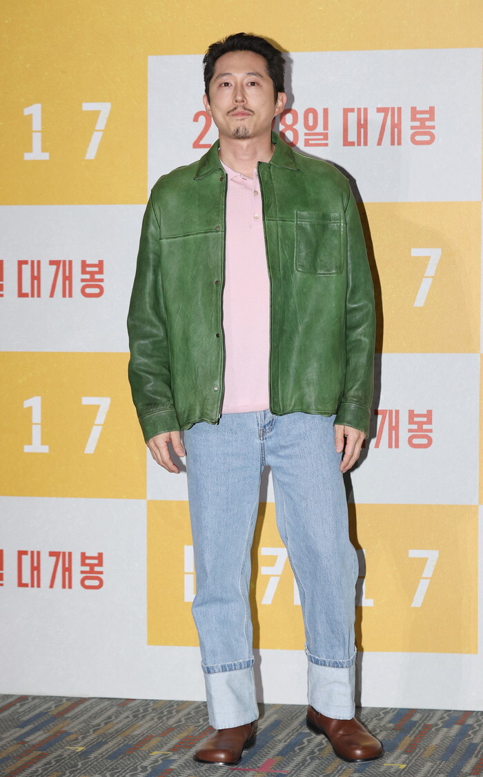 Korean-American actor Steven Yeun, who stars in the new movie "Mickey 17," attends a publicity event in Seoul on Feb. 20, 2025, to promote the movie that is set to hit local screens in South Korea on Feb. 28. (Yonhap)