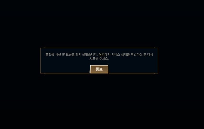 | ▲ 리그 오브 레전드 접속 장애 메시지 [리그 오브 레전드 캡처] |
