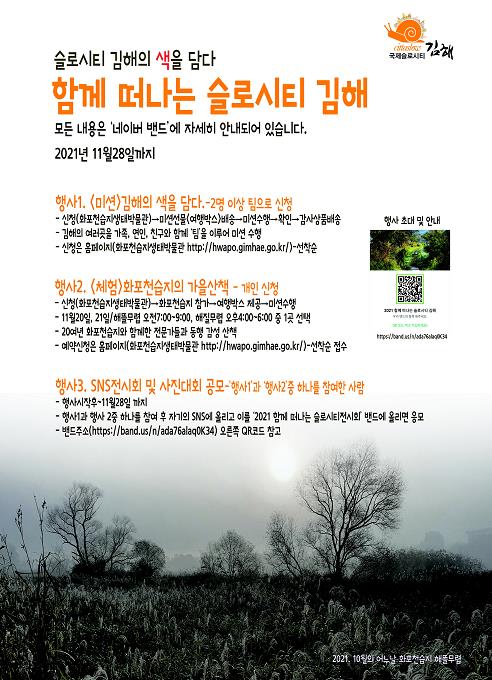 김해시는 오는 28일까지 '함께 떠나는 슬로시티 김해' 행사를 한다고 3일 밝혔다.