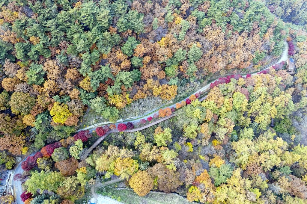(증평=연합뉴스) 충북 증평 좌구산 휴양랜드 일대 산림이 가을옷을 갈아입었다.