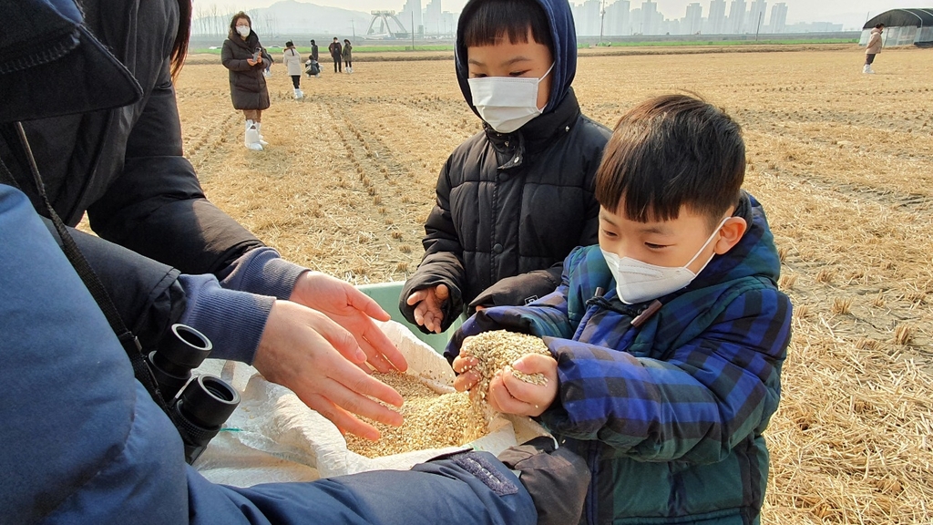 | ▲ 세종시 장남들에서 철새에 먹이 주는 어린이들 [ 세종시 장남들 보전 시민모임 제공. 재판매 및 DB 금지] |