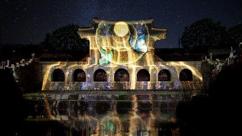 태양의 빛은 부소산문을 배경으로 미디어 아티스트들과 협업한 전시와 미디어파사드 쇼를 선사한다.