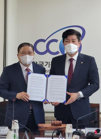 | ▲ 한국교회총연합과 한국기독교총연합회 18일 통합 위한 기본 합의서 채택 (왼쪽부터 한교총 통합추진위원장인 소강석 목사와 한기총 통합추진위원장인 김현성 변호사) [기관통합추진위원회 제공] |