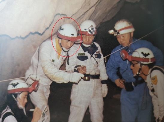 | ▲ 고수동굴 탐사 당시 서무송 교수 모습 왼쪽에서 두 번째 [국립중앙도서관 제공. 재판매 및 DB 금지] |