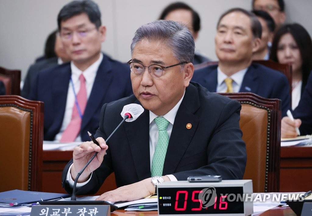 | ▲ Foreign Minister Park Jin responds to lawmakers' questions during a parliamentary session at the National Assembly in western Seoul on Aug. 23, 2023. (Yonhap) |