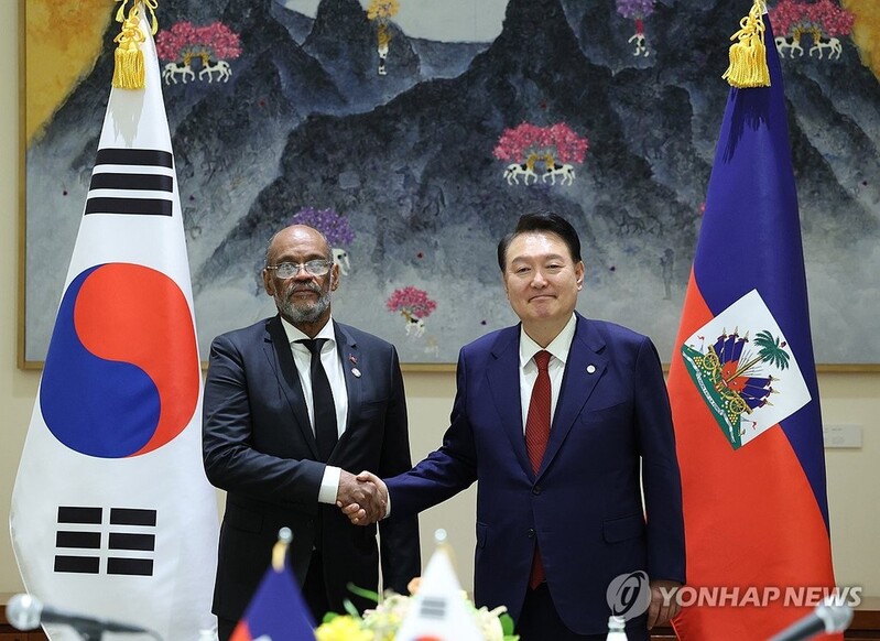 During a summit with Slovenian President Natasa Pirc Musar, he expressed hope for South Korean companies' participation in a planned nuclear power plant construction project in the European country, while in a meeting with Haitian Prime Minister Ariel Henry, he discussed cooperation on maintaining public safety in Haiti, and expressed his wish to continue to contribute to its social and economic development.