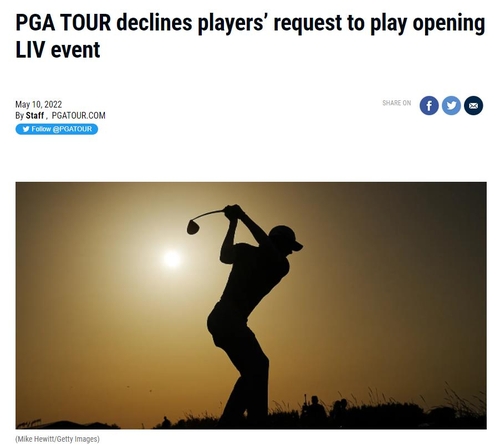 | ▲ 선수들의 리브 인터내셔널 대회 출전 요청 거부 발표한 PGA 투어 [PGA 투어 홈페이지 캡처. 재판매 및 DB 금지] |