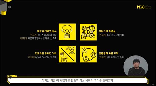 (서울=연합뉴스) 김주환 기자 = 최근 블록체인 게임 개발 계획을 발표한 넥슨의 현직 개발자가 현실적인 블록체인 게임 시스템의 한계점과 해결 방안을 구체적으로 설명했다.