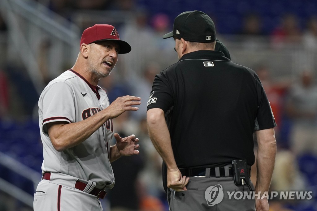 | ▲ 벨리노 심판에게 항의하는 로블로 애리조나 감독 [AP=연합뉴스 자료사진] |