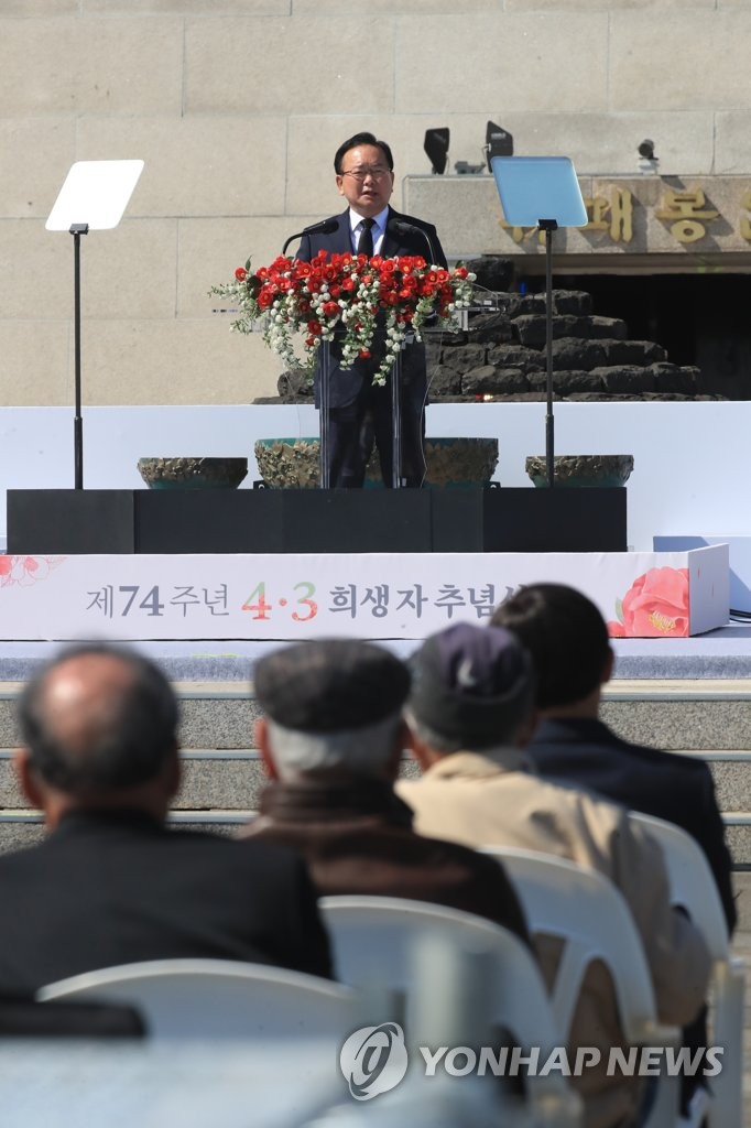 김 총리는 추념사를 통해 "제주의 잔인했던 봄은 푸른 바다 아래로 영원히 가라앉는 듯했으나 역사의 진실과 정의를 바라는 끈질긴 외침을 통해 마침내 역사의 심연에서 그 본 모습을 드러냈다"고 강조했다.