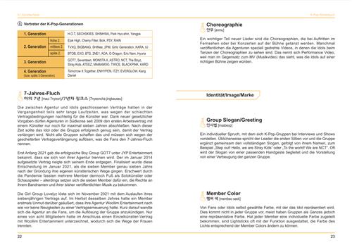 또 케이팝이 한국 사회, 문화에서 비롯된 만큼 다양한 한국 문화 소개도 만나볼 수 있다. 남자 가수들이 왜 머리를 깎고 입대하는지, 방송 프로그램 아이돌육상선수권대회가 왜 연초(설)와 가을(추석)에 열리는지 등 한국과 독일 간 문화적 차이로 인해 알기 어려웠던 부분도 친절하게 설명한다.