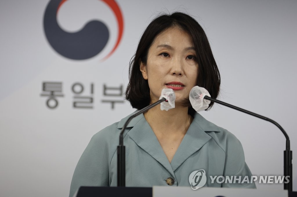 | ▲ South Korean unification ministry's deputy spokesperson, Lee Hyo-jung, issues a statement on North Korea during a press briefing at the government office complex in Seoul on Aug. 19, 2022. (Yonhap) |