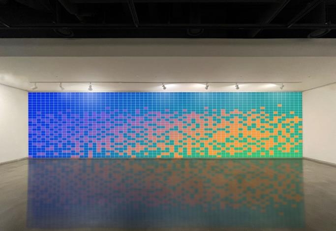 갤러리 벽면 전체에는 색색의 전시 엽서 2천100장이 붙은 관객 참여형 작품 '두 개의 그라데이션 : 방명록 프로젝트'가 설치됐다. 관객들이 엽서를 바꿔 붙임에 따라 다른 색면이 나타난다. 4월 4일까지.