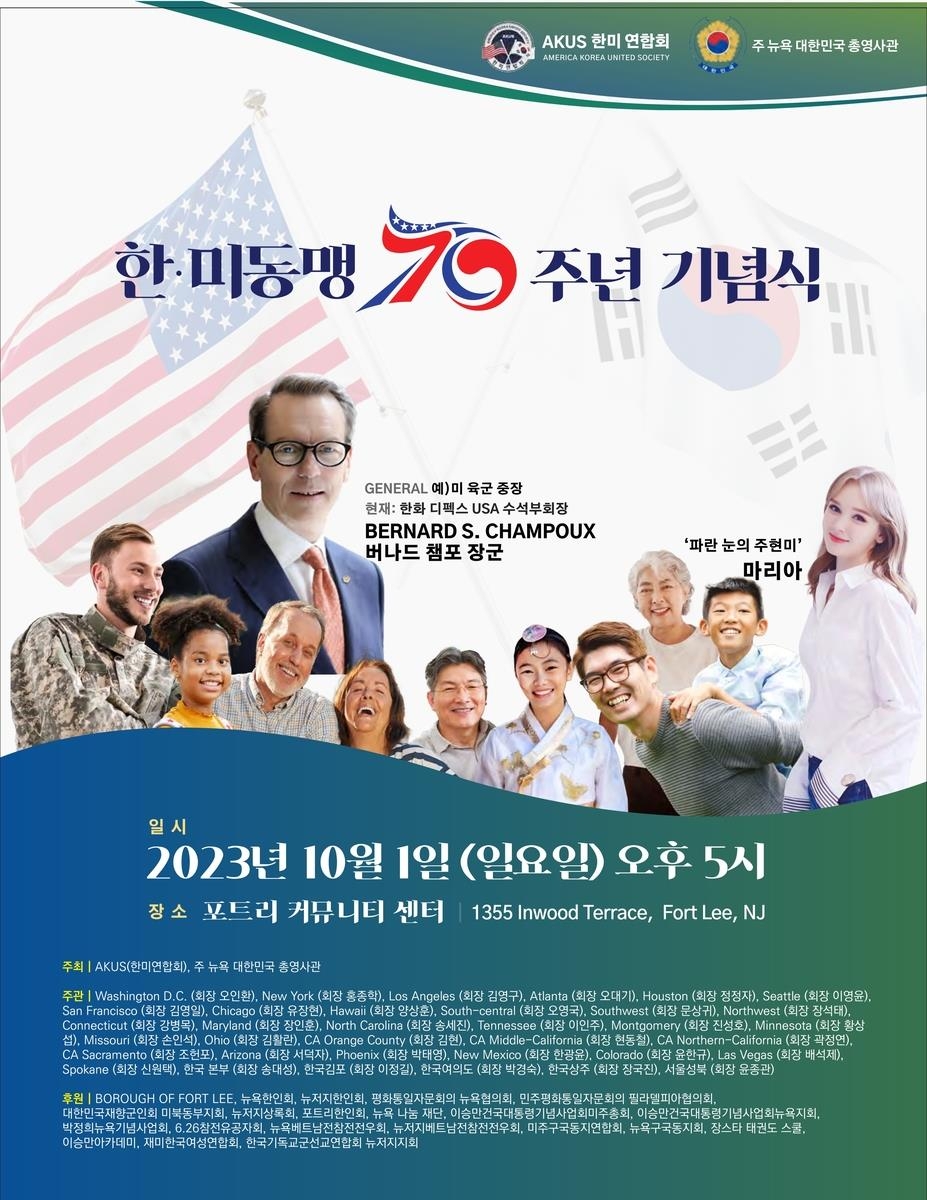 | ▲ This photo provided by the America-Korea United Society shows the notification of a planned event to celebrate the 70th anniversary of the S. Korea-U.S. alliance in New Jersey on Oct. 1, 2023. (PHOTO NOT FOR SALE) (Yonhap) |
