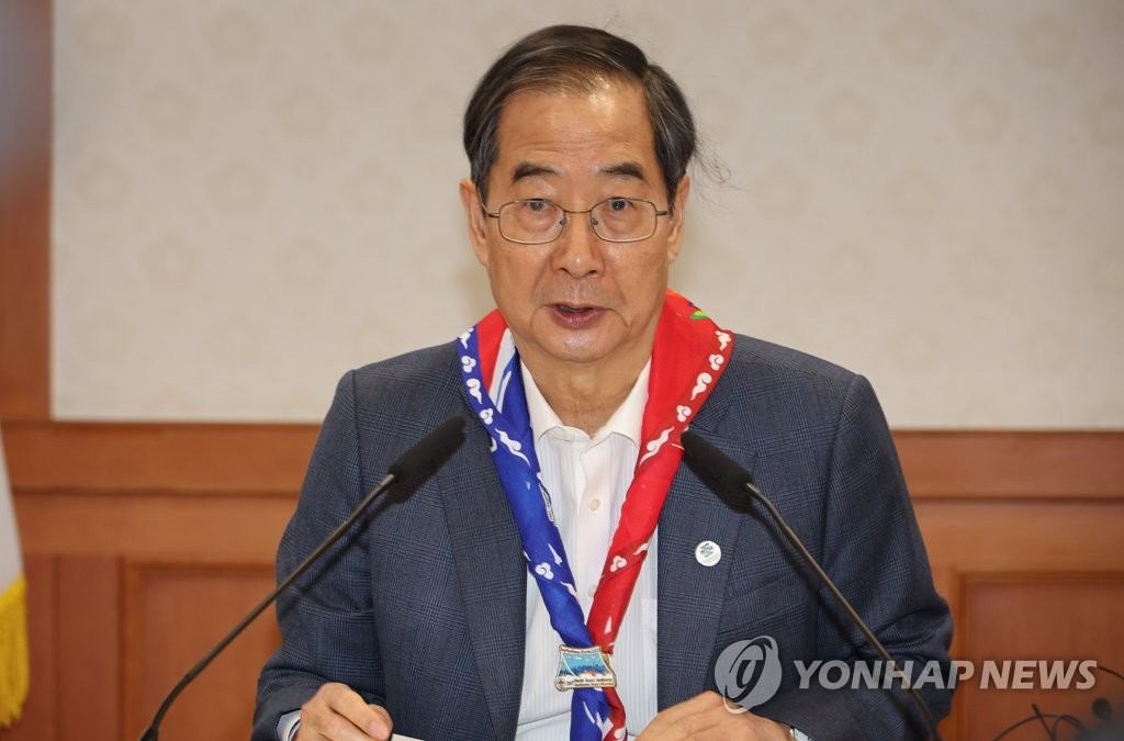 | ▲ Prime Minister Han Duck-soo speaks at the government complex in Seoul on March 3, 2023, during a meeting of a government committee tasked with supporting the country's preparations for the 25th World Scout Jamboree. The international youth camp, held every four years to facilitate cultural exchanges among teenagers worldwide, is set to take place in Saemangeum, a reclaimed area located on the western coast of North Jeolla Province, from Aug. 1-12, 2023. (Yonhap) |
