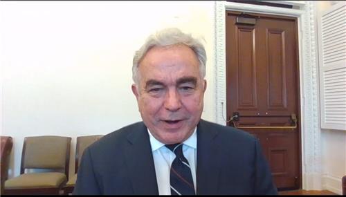 | ▲ This photo, captured from a video provided by the White House, shows National Security Council Coordinator for the Indo-Pacific Kurt Campbell speaking in a pre-recorded speech for a peace forum hosted by Yonhap News Agency and Seoul's unification ministry. (PHOTO NOT FOR SALE) (Yonhap) |
