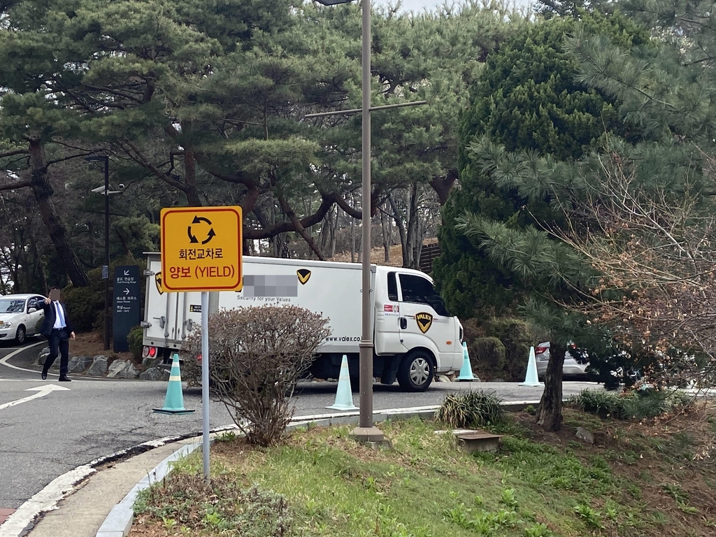 귀중품 운송업체 차량을 비롯해 승합차 3∼4대가 식장 쪽으로 들어가기도 했다. 화환을 실은 트럭이 도착했지만, 식장 직원들이 확인 후 화환을 내리지 않은 채 트럭을 돌려보내는 모습도 확인됐다.