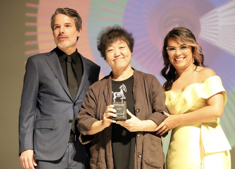 그는 수상소감으로 "오늘 받은 이 상은 한국과 멕시코 여성 감독에게 조금 더 힘을 내서 영화를 찍으라는 격려의 의미로, 제가 대표로 받았다고 생각한다"며 "공로상은 대개 은퇴하시는 분들이 많이 받곤 하는데, 저는 아직 영화를 조금 더 만들고 싶다"고 말해 관객들의 박수갈채를 받았다.