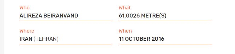 26일 기네스월드레코드 홈페이지에 따르면 베이란반드는 비거리 61.0026m를 기록해 축구 경기 중 가장 멀리 공을 던진 선수로 세계기록에 등재됐다.