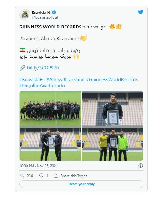 베이란반드의 소속팀인 포르투갈 프로축구 보아비스타도 이날 홈페이지에 베이란반드가 기네스 세계기록 인증서를 받은 사진을 올리고 진기록 수립을 축하했다.