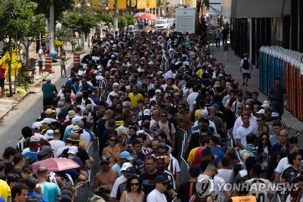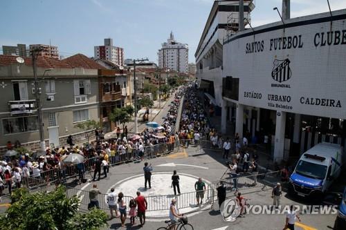산투스 축구장에 추모객들 운집…마지막 모습 보려고 2∼3㎞ 대기