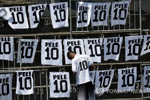 1만6천석 규모 관중석에는 '왕이여 만세'라는 글귀를 인쇄한 대형 플래카드와 펠레 등번호 '10' 장식물 등으로 꾸며졌고, 경기장 밖 펠레 조형물에는 지난 며칠간 팬들이 가져다 놓은 꽃다발이 수북이 쌓였다.