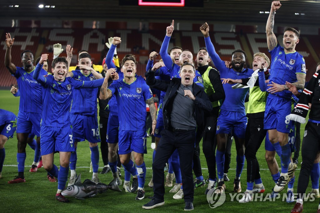 (서울=연합뉴스) 최송아 기자 = 잉글랜드 축구 4부리그 팀인 그림즈비 타운이 프리미어리그(EPL) 팀인 사우샘프턴을 격파하고 잉글랜드축구협회(FA)컵 8강에 오르는 이변을 일으켰다.