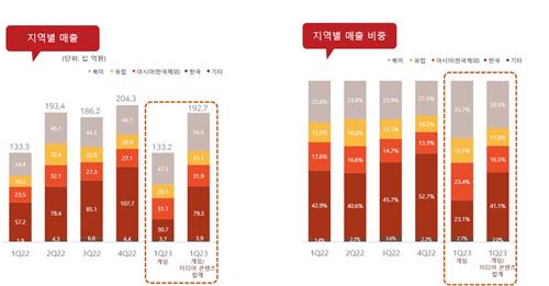 | ▲ 컴투스의 2023년 1분기 지역별 매출 [컴투스 제공. 재판매 및 DB 금지] |