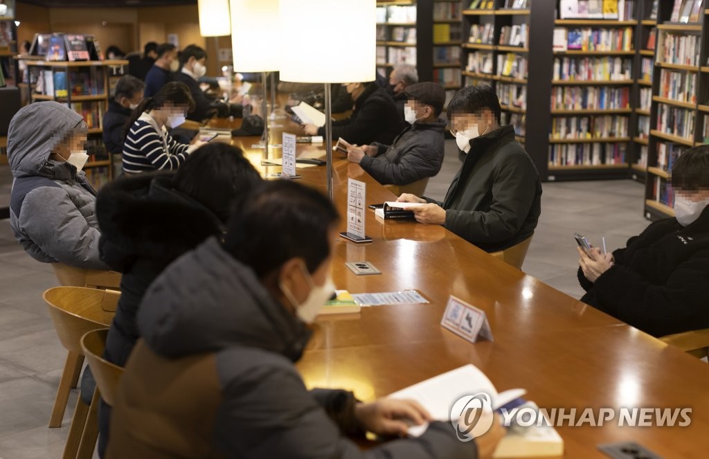 | ▲ 오늘 실내마스크 해제 논의 시작 (서울=연합뉴스) 윤동진 기자 = 정부 차원의 실내마스크 착용 의무 해제 논의가 시작된 17일 점심시간 서울의 한 서점에서 시민들이 마스크를 쓴 채 책을 읽고 있다. 국가감염병위기대응자문위원회는 이날 오후 화상회의를 열고 실내마스크 의무 조정 시기 등에 대해 논의한다. 2023.1.17 mon@yna.co.kr |