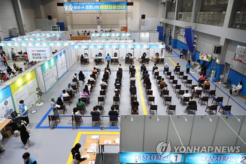 | ▲ People wait for their COVID-19 vaccine jabs at a vaccination center in western Seoul on Sept. 7, 2021. (Yonhap) |